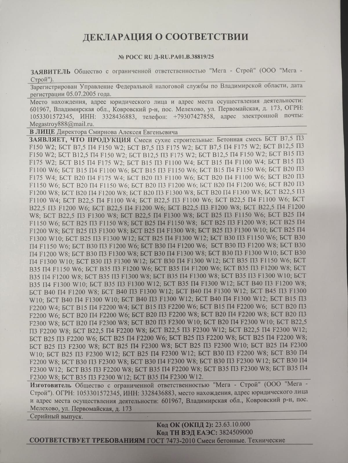 Вместе с товаром вы получите все необходимые документы: результат проверки в лаборатории, маркировка ГОСТ 7473-10, соответствие СНИП, сертификаты соответствия, паспорт качества партии.